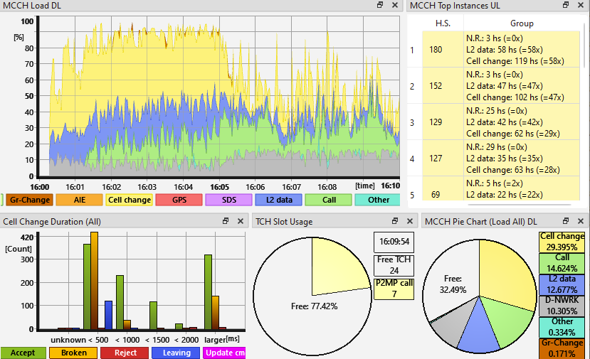 The intuitive operation of the software allows an in-depth analysis of load distribution (MCCH / TCH) and in particular the cell change parameters. The MAS is a unique product which receives data in real-time and allows deep analyses and data representation with graphs (bar, pie, list view).