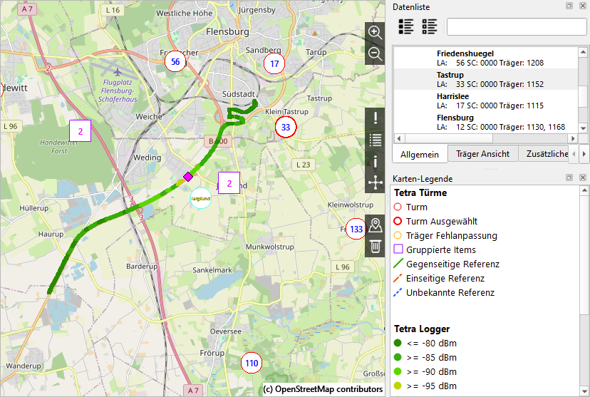 The Sepura Plug-In for Network Viewer enables reading of data sets recorded with the Sepura radios. The data can strength be visualized to evaluate the stored GPS data with field strength.